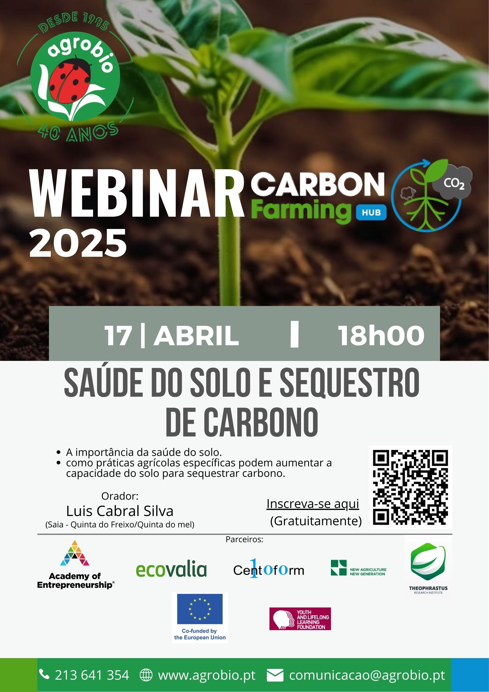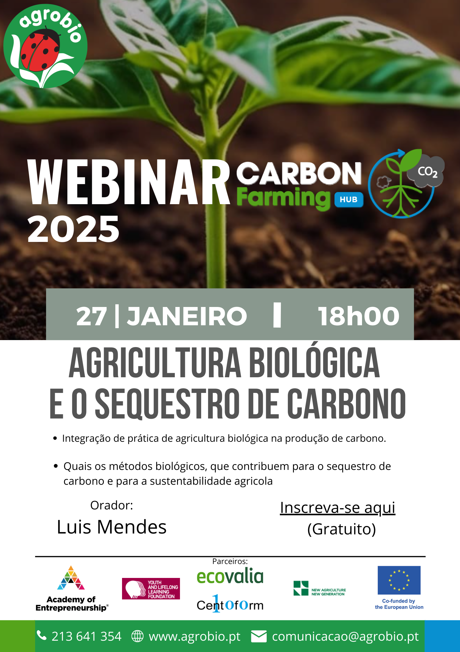 Webinar #1 in Portugal: Organic Farming & Carbon Sequestration https://youtu.be/24za84vcVNQ?si=I4n0tWcqXtiuKwVv On January 27th 2025, AGROBIO held a webinar under the Carbon Farming Awareness Hub project to raise awareness about carbon farming in organic agriculture. The…