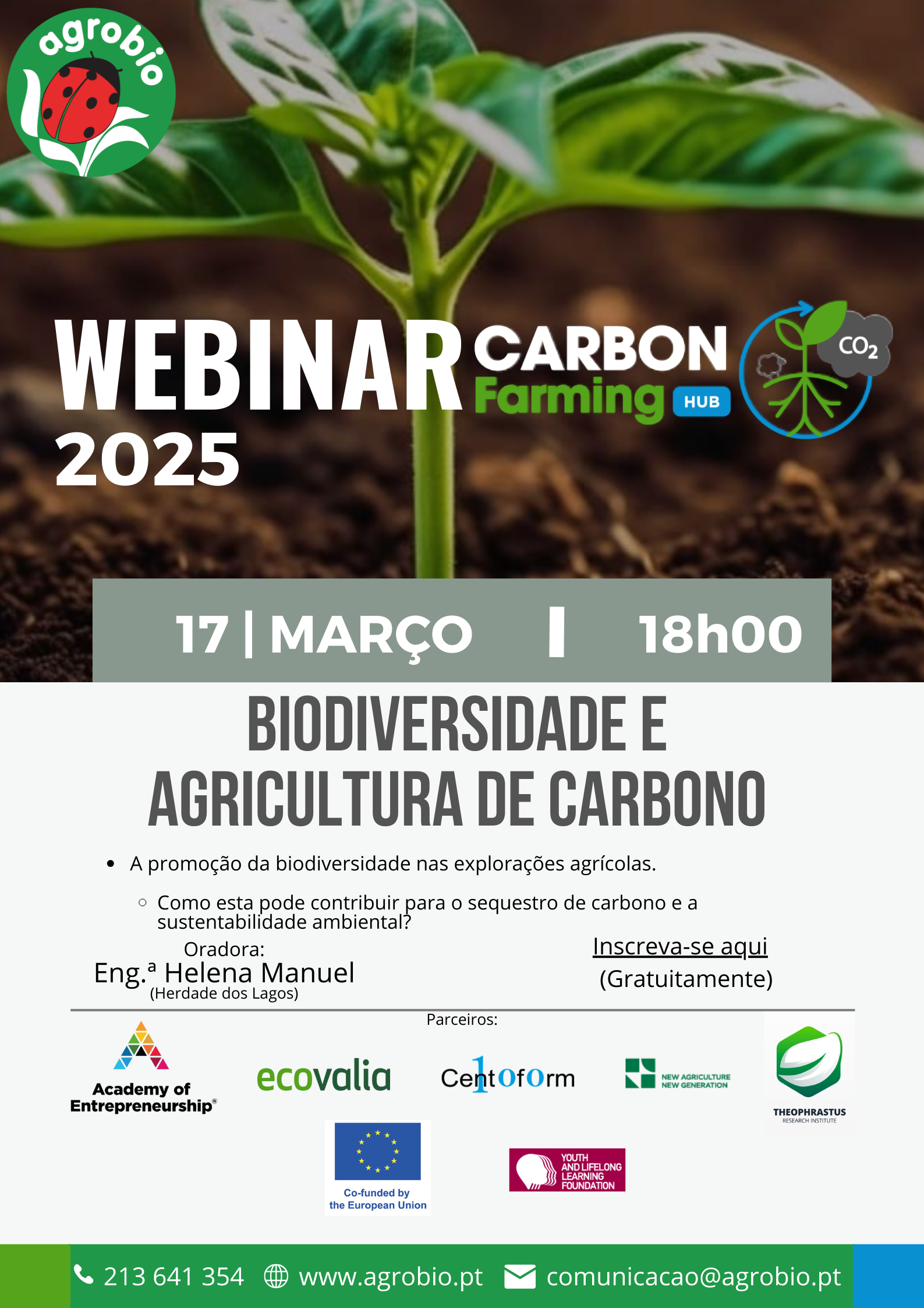 Webinar #2 in Portugal: Biodiversity & Carbon Farming https://youtu.be/f2UiDUz9zgc?si=YTcDa7XqwzOh0GcF On March 17th 2025, AGROBIO held a webinar titled Biodiversity & Carbon Farming as part of the Carbon Farming Awareness Hub project. The session featured Eng. Helena…